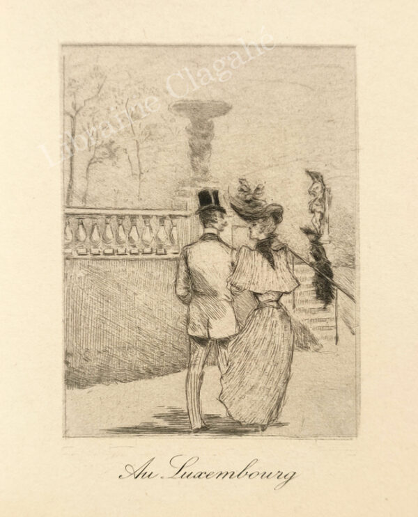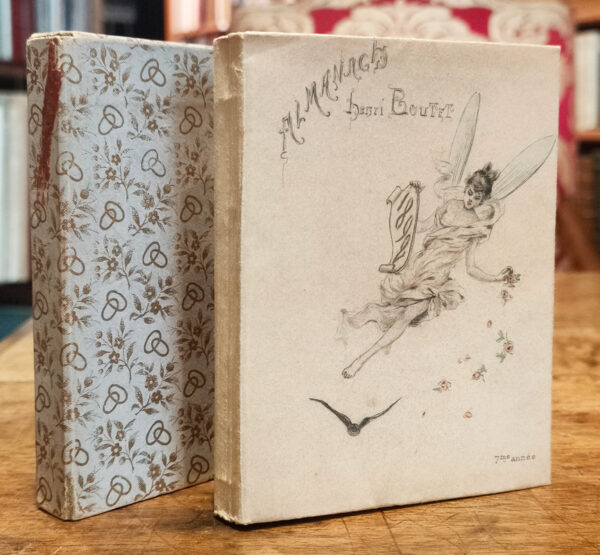 Paris, chez tous les libraires (Imp. Chamerot et Renouard), [1892] ; broché, 135 pp., couverture cartonnée rempliée avec papier Japon, illustrée d'une pointe sèche avec rehauts dorés et à l'aquarelle, étui décoratif ; 6 gravures hors-texte et nombreuses illustrations de Henri Boutet réhaussées à l'aquarelle.