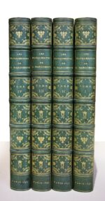Paris, Jouaust Librairie des Bibliophiles, 1873 ; quatre tomes petit in-4 ; demi-maroquin à coins vert empire, dos à cinq nerfs, caissons décorés et dorés d'un grand M couronné en alternance, entourés de petites étoiles, doubles palmettes dans les coins, dans un encadrement de doubles filets dorés, titre et tomaison dorés, filets dorés sur les plats (David) ; XCIX, (1), 160, (4) pp. ; (4), 257, (3) pp. ; (4), 250, (2) pp. ; (4), 313, (3) pp. ; portrait gravé en frontispice et 11 bois gravés.